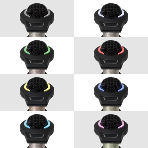 ● 高度可見的雙態式 RGB LED 燈環(7種可選顏色 + 關燈)指示開啟/靜音狀態;