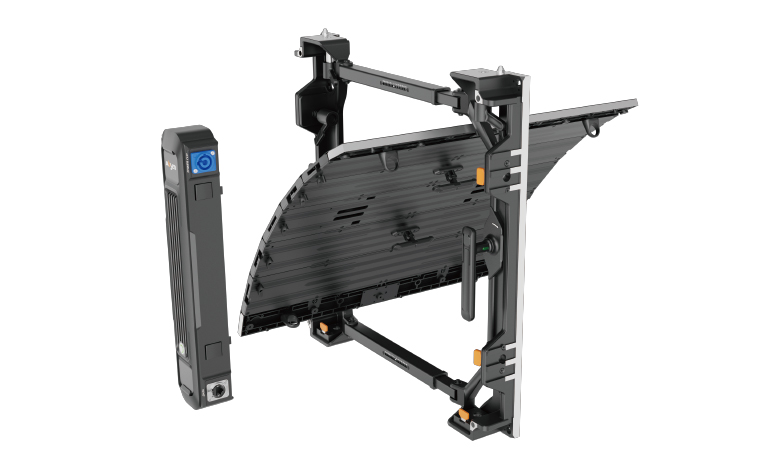 ⑥ 吊裝堆裝皆可,曲線依然:FL系列設(shè)計了小巧靈活的吊裝塊配件,以及前端帶有獨立連接片的專用配套支撐架配件,完美適配各種造型的弧形屏體安裝需求。